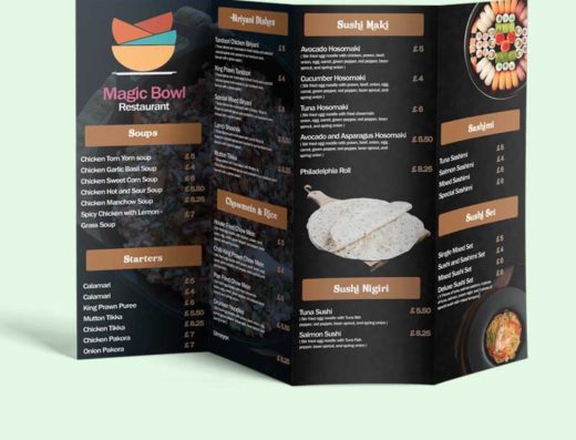 We render other services like business cards, Roller Banner, business leaflets, Restaurant menu card, Restaurant Menu Design, Z Fold Leaflet, Restaurant Menu Printing, take away menu, flyers and posters, leaflet menu, booklet printing, brochure printing.